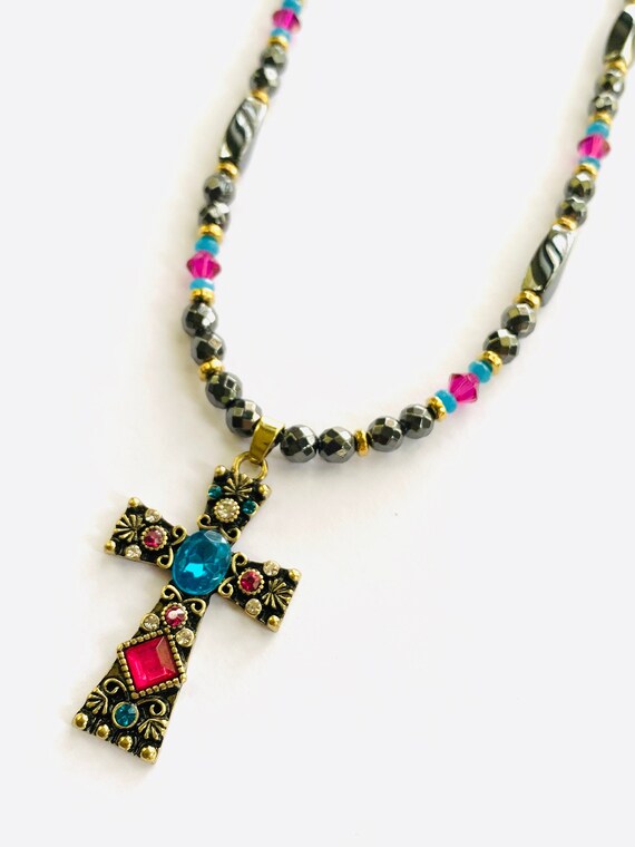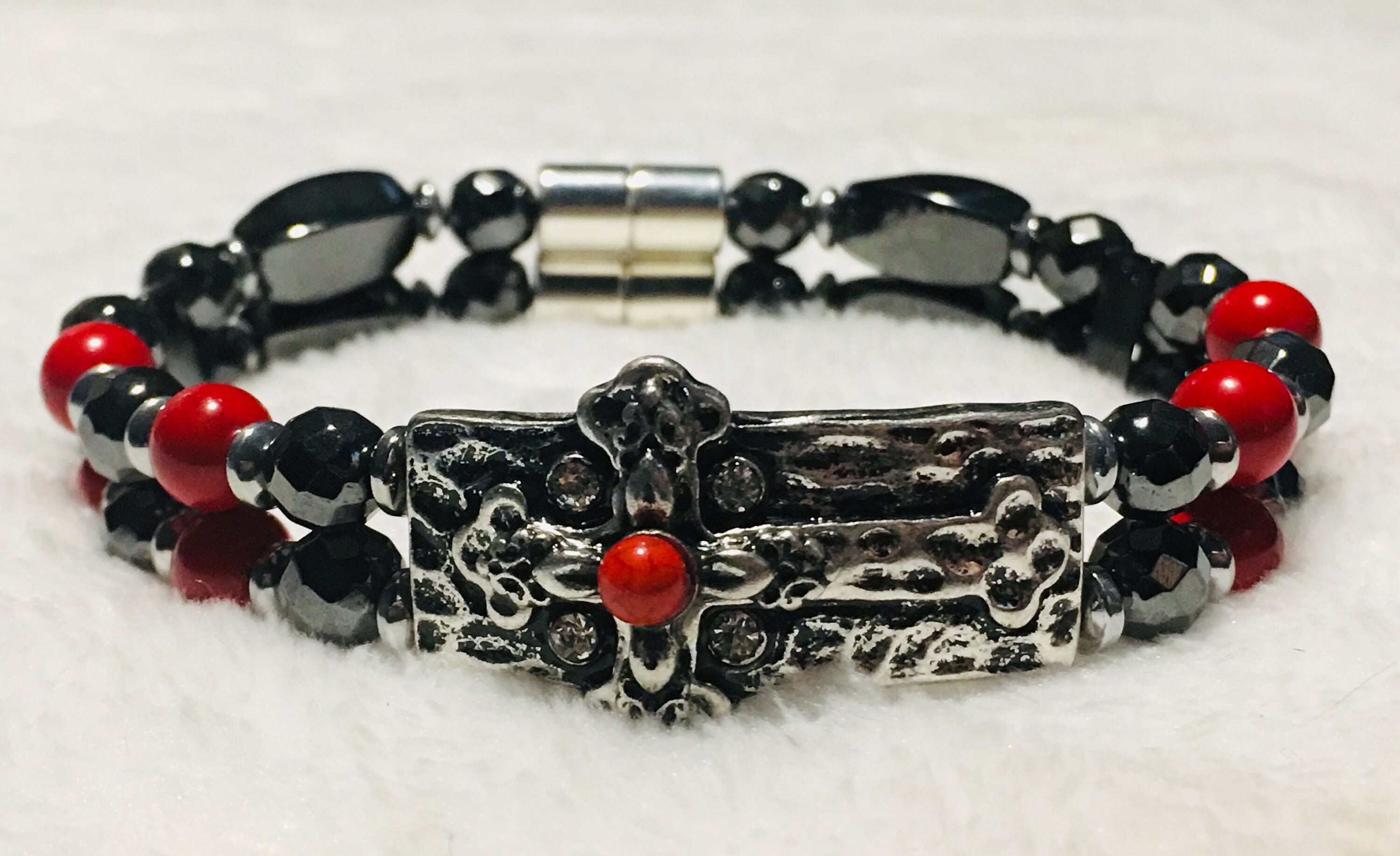 Antique Cross Magnetic Hematite Therapy Bracelet In Red Or Turquoise High Power Magnetic Core Training Real Estate